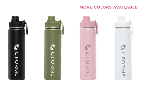 Truly Planet Friendly. Liforme’s water bottles make it easy to use less plastic. Choose from our four colours (olive, black, white, pink), three sizes, and two no-leak tops (screw-top or sipping) to find the one that’s perfect for your eco-conscious active lifestyle. Our vacuum-insulated stainless steel keeps your drinks cold (or hot) and tasting fresh. The double-walled design and textured surface make our bottles easy to grip, even if your palms get sweaty.