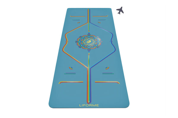 The Liforme Blue Sky Rainbow Yoga Mat features a bold and beautiful Rainbow variation of our signature alignment system. Allowing you to keep balanced and prevent injuries with intelligent cues, this AlignForMe system was designed for Yogis of all shapes and sizes. Our original Rainbow design is printed with our durable, non-toxic and eco-friendly ink. This mat has the same amazing non-slip surface that you love whilst providing firm stability and soft cushioning with a natural rubber base. It’s longer and wider than regular yoga mats and as always, is truly planet-friendly and body-kind.