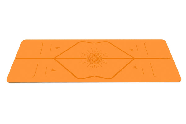 TRULY HAPPY. Welcome to your new happy place with our vibrant orange 'Liforme Happiness Mat' featuring a sunshine mandala at the centre of the mat, and our reverse points have been transformed into bluebirds of happiness flying around the sun. This bright new colour & beautiful etching design create the perfect space to bring more happiness into your daily practice.