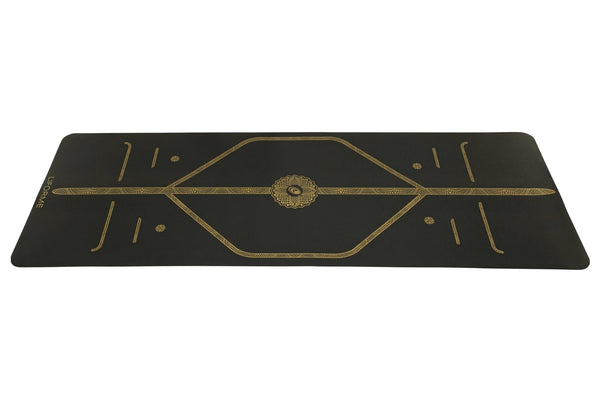 TRULY GLORIOUS. Our Liforme Black & Gold Travel Yoga Mat, in our mat(te) black base, features a striking gold variation of our signature alignment system. Printed with our durable, eco-friendly and non-toxic ink, the intelligent cues of the AlignForMe system works intuitively with your body, allowing you to stay balanced, aligned and centred. Providing the same amazing non-slip surface for your on-the-go practice, this glorious mat is truly planet-friendly and body-kind.