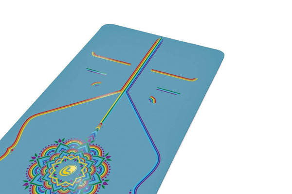 The Liforme Blue Sky Rainbow Travel Yoga Mat features a bold and beautiful Rainbow variation of our signature alignment system. Allowing you to keep balanced and prevent injuries with intelligent cues, this AlignForMe system was designed for Yogis of all shapes and sizes. Our original Rainbow design is printed with our durable, non-toxic and eco-friendly ink. Providing the same amazing non-slip surface for your on-the-go practice and lighter in weight than our regular Yoga mats, this beautiful mat is truly planet-friendly and body-kind.