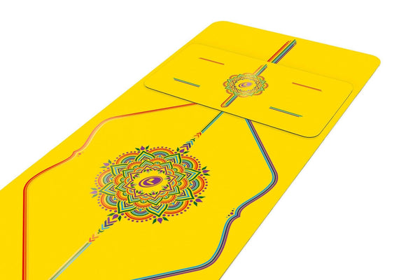 TRULY HOPEFUL. In an exciting yellow surface colour, the Liforme Rainbow Hope Yoga Pad features a bold and beautiful Rainbow variation of our signature alignment system. Our original Rainbow design is printed with our new durable, non-toxic and eco-friendly ink. This mini mat packs up super small to provide the comfort, stability, and grip you need wherever you go.